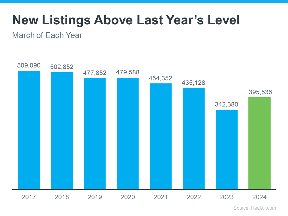 Recent data from Realtor.com shows that the number of new listings—homes just put on the market—is increasing (see the accompanying graph). This suggests more homeowners are opting to sell compared to last year. March saw a 15.5% increase in new listings over the previous year, ending 17 months of fewer homes hitting the market.